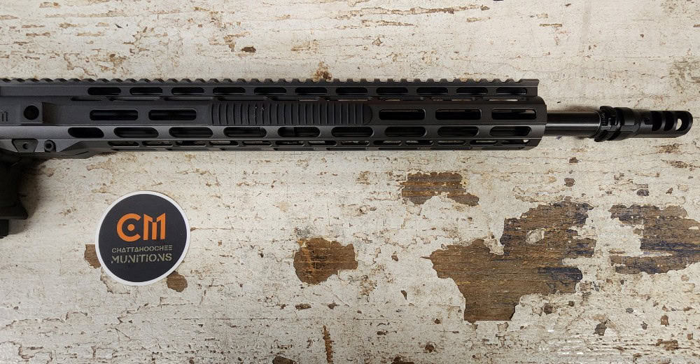 This is an 18″ .350 Legend rifle from Chattahoochee Munitions. This will be one of the sturdiest-feeling weapons, as everything is designed in tight tolerances. All of our rifles are equipped with HIPERFIRE (High Performance Firearms) Triggers; all are 2.5lb single-stage Reflex (curved) or Competition (straight with shoe); Competition is pictured. Odin Adjustable Buffers and Superlative Arms Adjustable Gas Blocks are standard on our rifles.