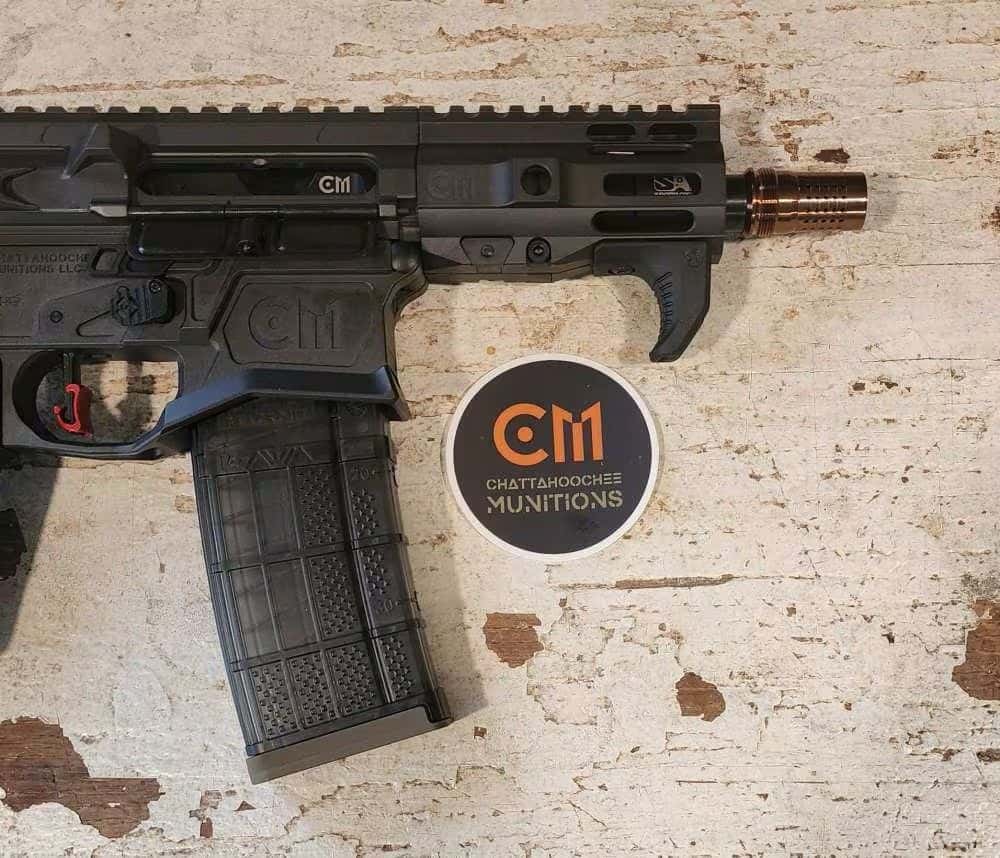 This is the flagship AR-15 pistol of Chattahoochee Munitions. This will be one of the sturdiest-feeling weapons, as everything is designed to tight tolerances. Pictures show a Q Cherry Bomb, but we can substitute for any 5/8×24 muzzle device of your choosing, whether Dead Air Keymo, Silencerco ASR, Rugged, etc. (Price variance applies to some muzzle devices). All of our firearms are equipped with HIPERFIRE (High Performance Firearms) Triggers; all are 2.5lb single-stage Reflex (curved) or Competition (straight with shoe); Competition is pictured.