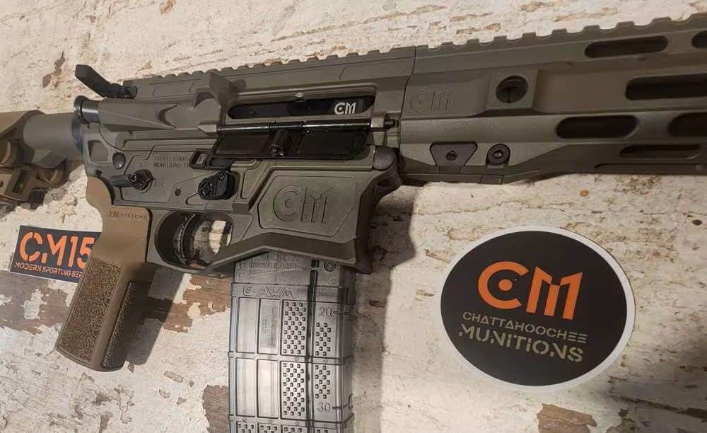 This is a 16″ 5.56 AR15 NATO rifle from Chattahoochee Munitions. This will be one of the sturdiest-feeling weapons, as everything is designed in tight tolerances. All of our rifles are equipped with HIPERFIRE (High Performance Firearms) Triggers; all are 2.5lb single-stage Reflex (curved) or Competition (straight with shoe); Reflex is pictured. Adjustable Gas Blocks and Buffers are standard on our rifles.